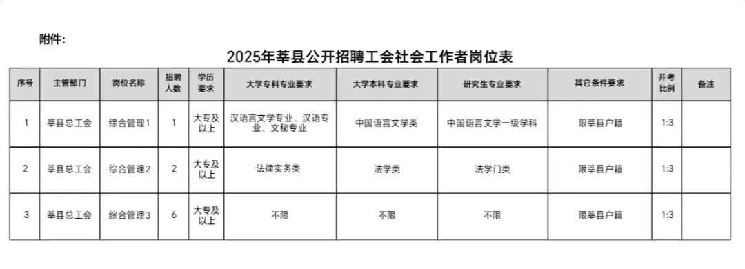 公开招聘工会社会工作者共计9名,具体招聘岗位数量及岗位条件见岗位表(