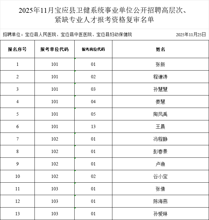 1.附件1:2025年11月宝应县卫健系统事业单位公开招聘高层次、紧缺专业人才报考资格复审名单.xlsx