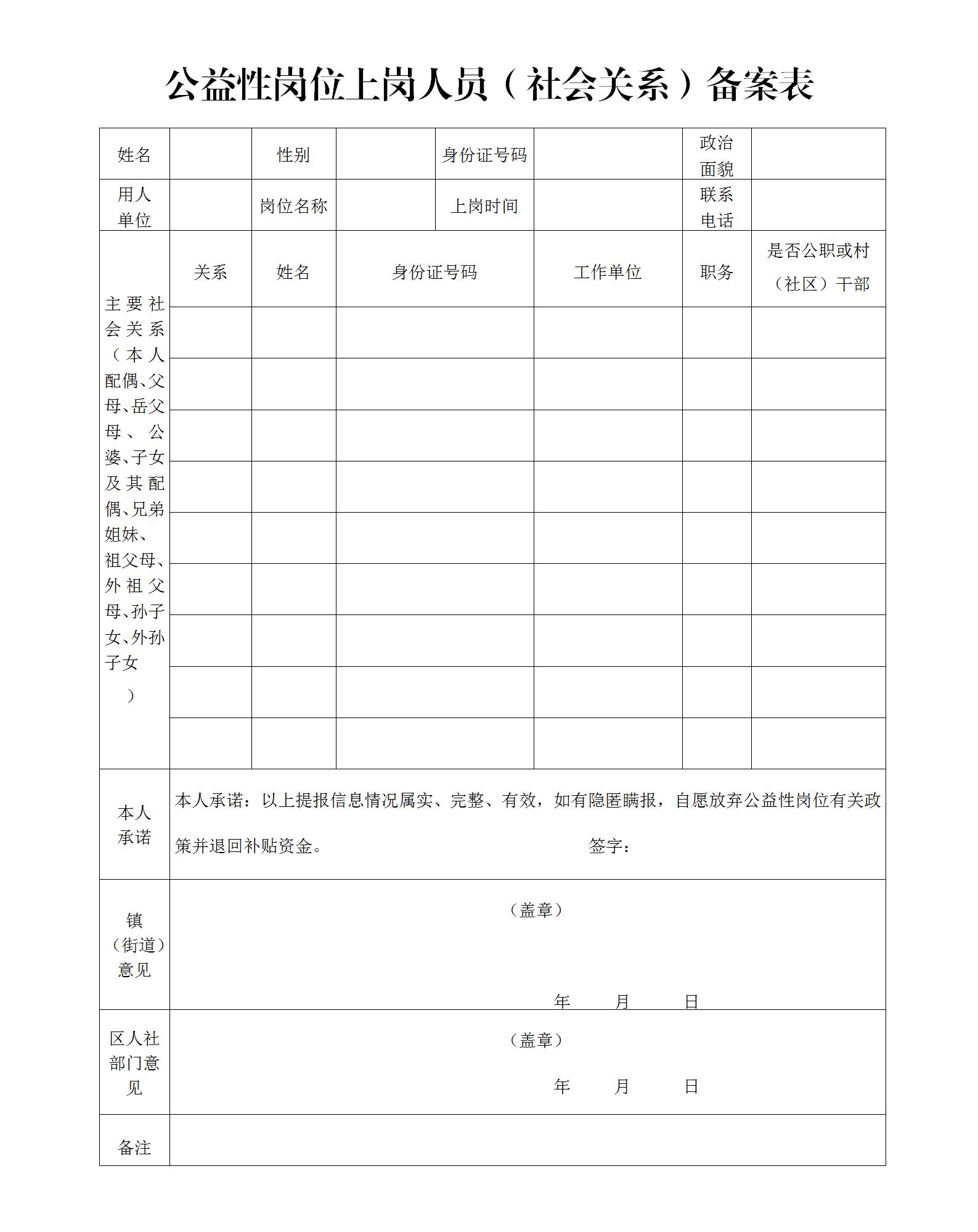 (3)公益性岗位上岗人员(社会关系)备案表(附件三)
