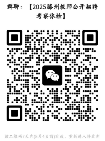 对考察合格人员,由滕州市教育和体育局统一组织体检。进入体检范围人员和体检时间另行通知,请考生保持通讯畅通,因通讯不畅造成损失,后果自负。进入考察范围的人员需加入微信群,群二维码见附件。