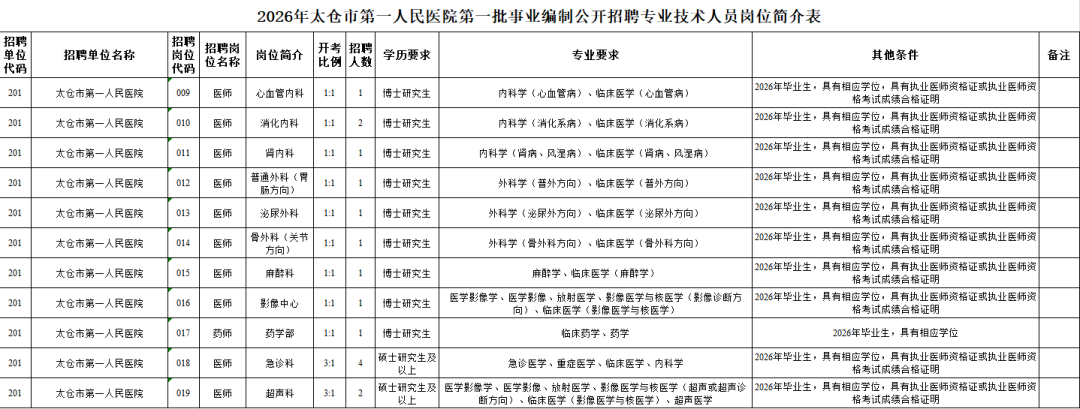 附件:《2026年太仓市第一人民医院第一批事业编制公开招聘专业技术人员岗位简介表》