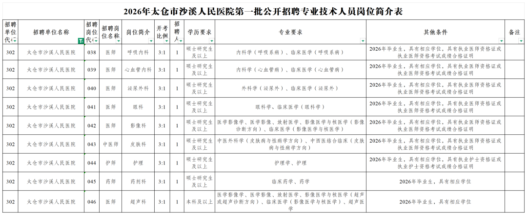 附件:《2026年太仓市沙溪人民医院第一批事业编制公开招聘专业技术人员岗位简介表》