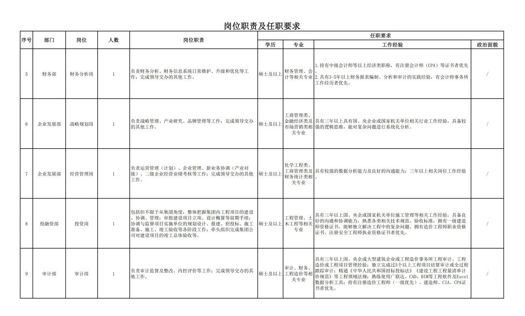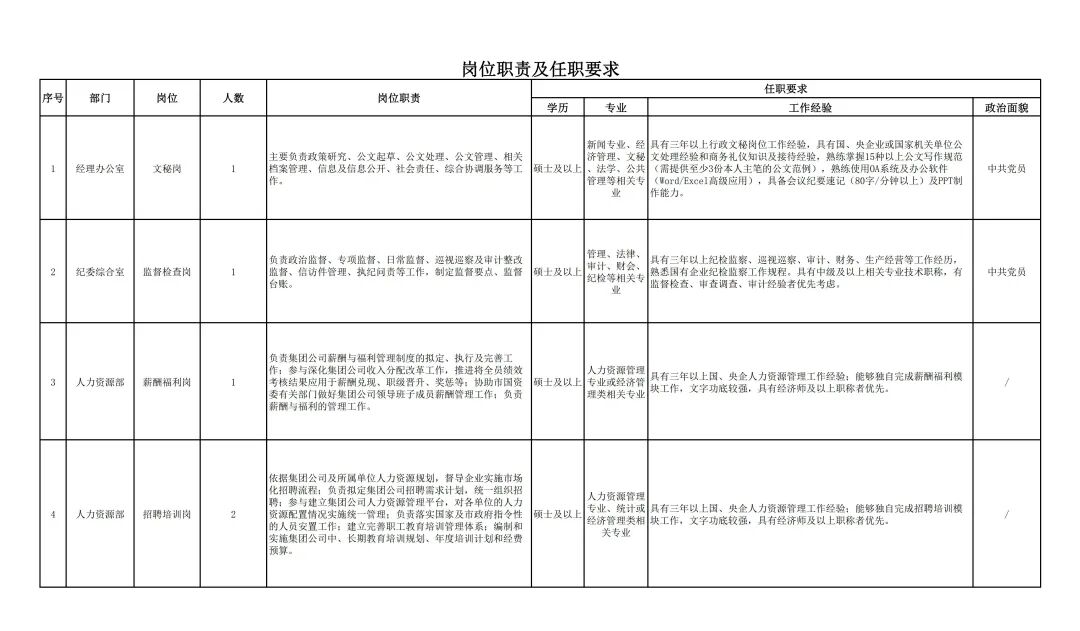 按照集团公司年中工作会部署和“十五五”人才规划的要求,集团公司面向社会进行公开招聘,现将有关事宜公告如下: