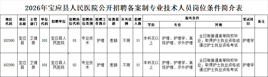 附件1:2026年宝应县人民医院公开招聘备案制专业技术人员岗位条件简介表.xlsx