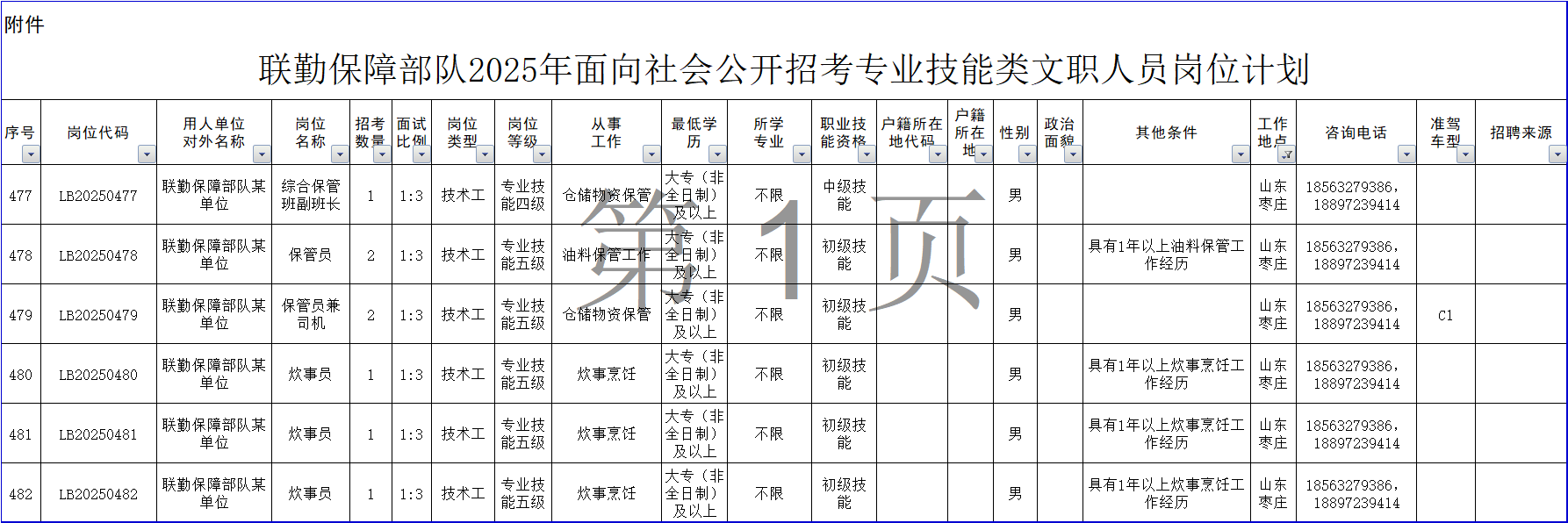 附件:联勤保障部队2025年面向社会公开招考专业技能类文职人员岗位计划