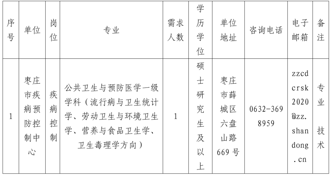 1.《枣庄市疾病预防控制中心2025年急需紧缺人才引进岗位汇总表》